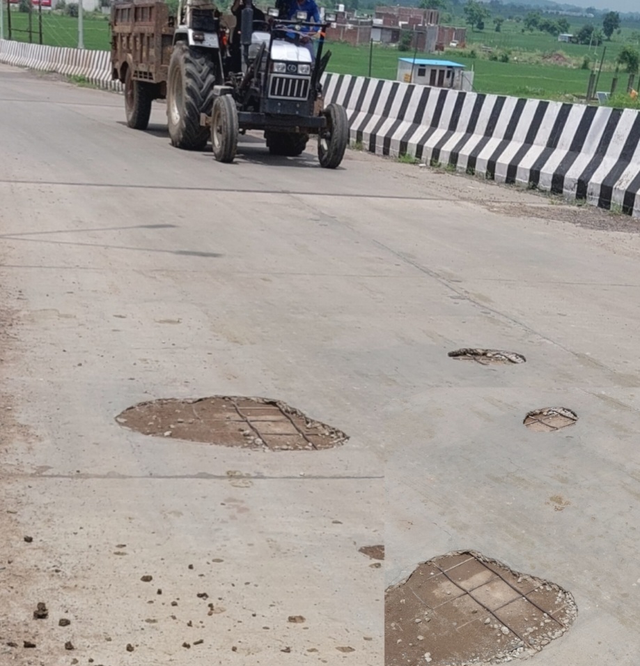 गुलगांव मार्ग ओवरब्रिज में गड्ढे, बाहर निकला सरिया।करोड़ों की लागत से बने ओवरब्रिज की गुणवत्ता पर सवाल, जिम्मेदार बने अनजान