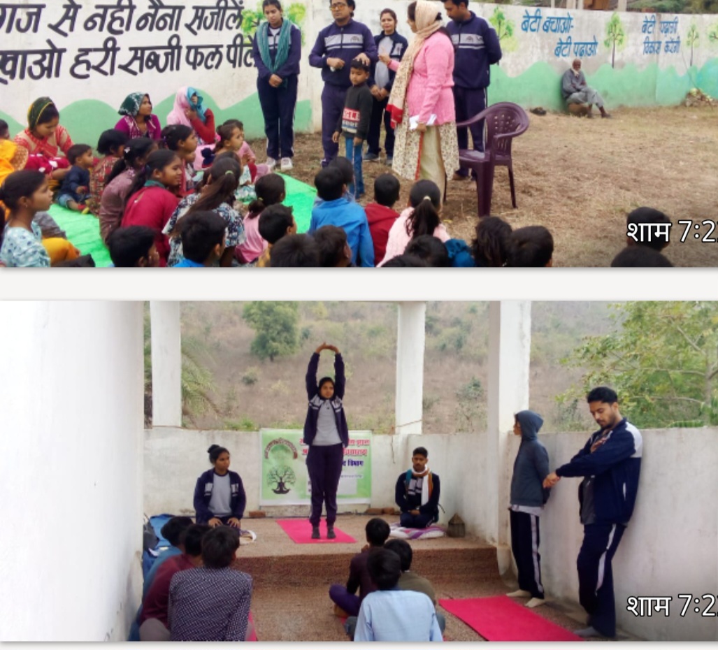 साँची विवि ने किया ग्राम भगवतपुर में योग एवं स्वास्थ्य शिविर आयोजित