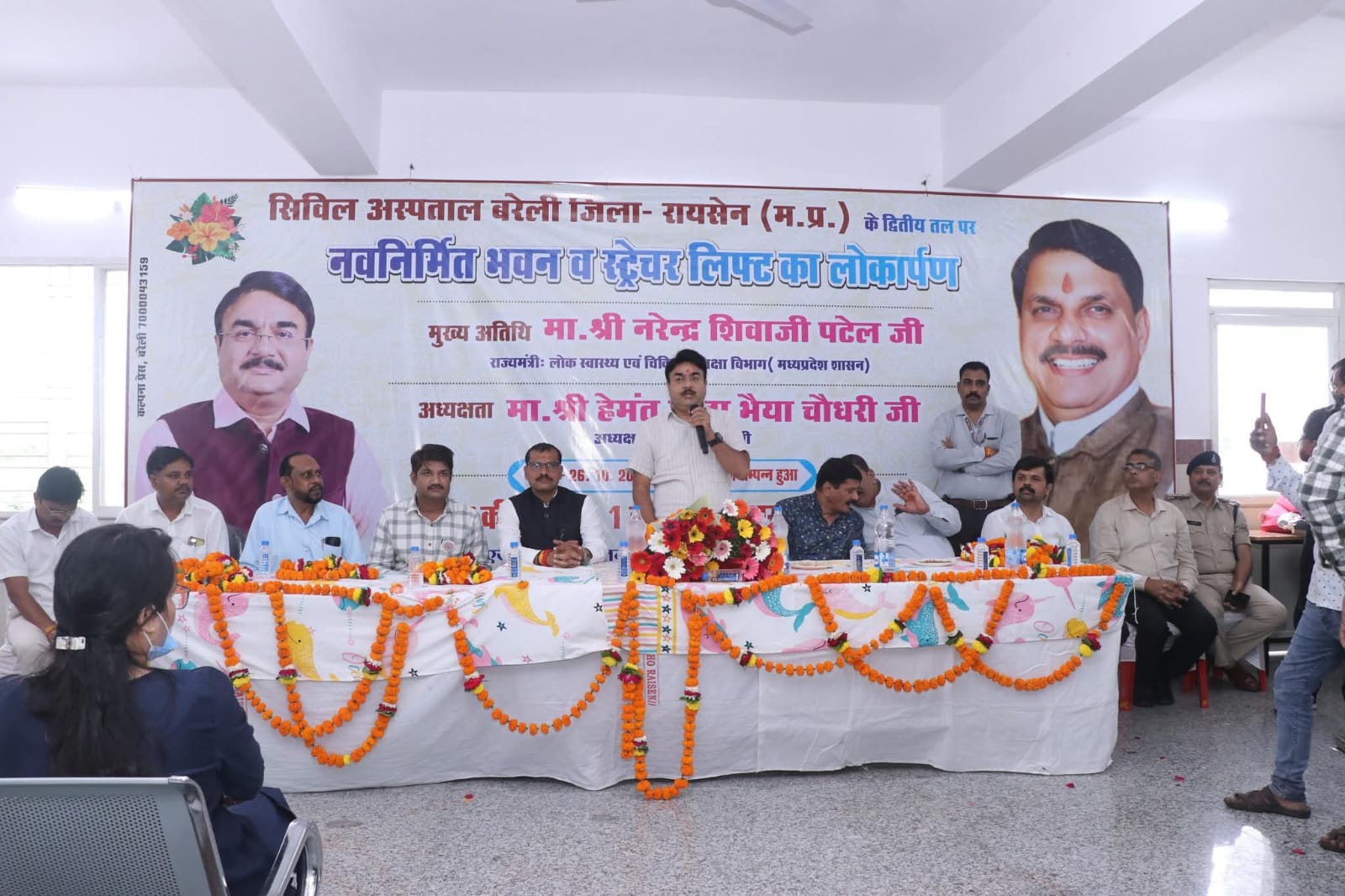 लोक स्वास्थ्य एवं चिकित्सा शिक्षा राज्यमंत्री श्री नरेंद्र शिवाजी पटेल द्वारा आज शासकीय सिविल अस्पताल बरेली में नवनिर्मित द्वितीय तल पर नवीन भवन का लोकार्पण किया गया। इस अवसर पर आयोजित कार्यक्रम में स्वास्थ्य राज्यमंत्री श्री पटेल ने कहा कि नागरिकों का स्वास्थ्य शासन की प्राथमिकता है। नागरिकों को त्वरित और बेहतर उपचार मिले, इसके लिए लगातार स्वास्थ्य सेवाओं तथा सुविधाओं का विस्तार किया जा रहा है। उन्होंने कहा कि सिविल अस्पताल में इस अतिरिक्त भवन में 6 नए वार्ड का निर्माण किया गया है जिससे कि सिविल अस्पताल बरेली में अतिरिक्त 40 बेड मरीज के लिए उपलब्ध हो सकेंगे। इसके अतिरिक्त सिविल अस्पताल में स्वचालित लिफ्ट भी लगाई गई है जिससे कि मरीजों को एक तल से दूसरे तल जाने में काफी सुविधा होगी। कार्यक्रम में नगर परिषद अध्यक्ष, सीएमएचओ डॉक्टर एचएन मांडरे, एसडीम श्री संतोष मुद्गल, बीएमओ डॉ हेमंत यादव तथा स्वास्थ्य विभाग के अधिकारी उपस्थित रहे।