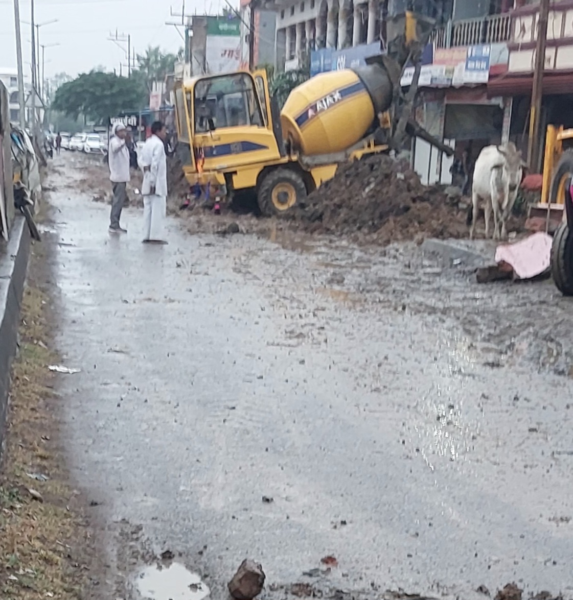 नगर की जलनिकासी व्यवस्था सुधारने के उद्देश्य से लगभग ढाई करोड़ रुपये की लागत से नाला निर्माण कार्य जारी है। लेकिन बारिश के बीच भी खुदाई और सीमेंटिंग कार्य जारी रहने से राष्ट्रीय राजमार्ग की सर्विस रोड दलदली हो गई है। छोटे वाहनों और पैदल यात्रियों को इस मार्ग से गुजरने में काफी दिक्कतों का सामना करना पड़ रहा है।