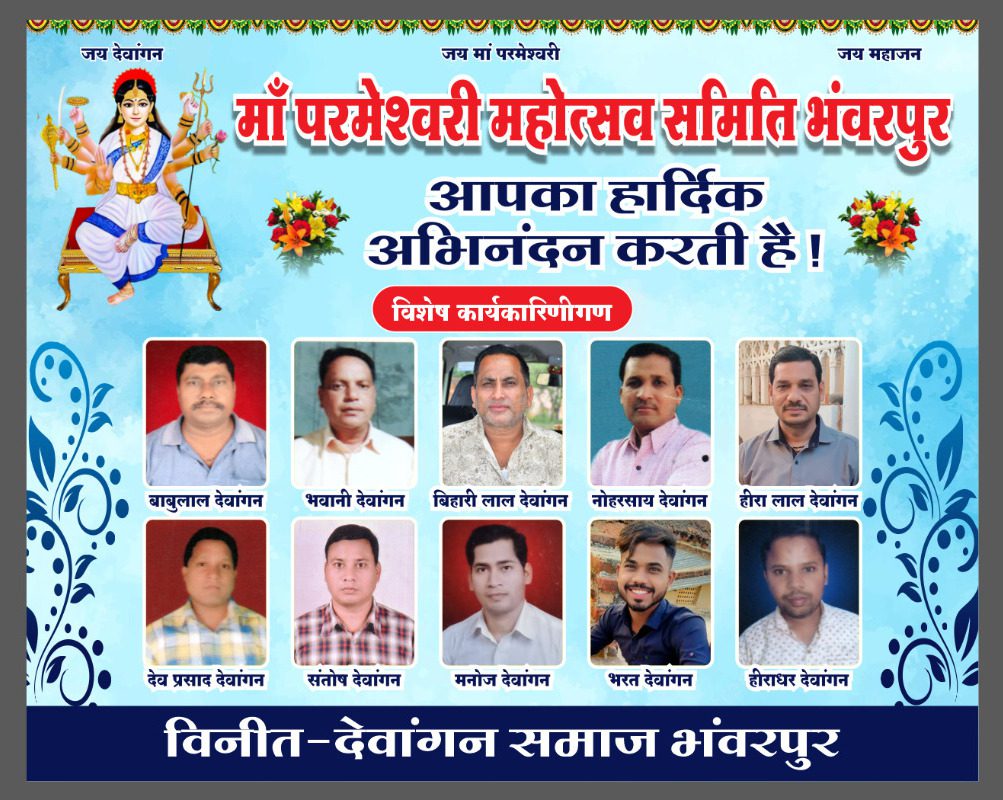 मां परमेश्वरी पुराण महोत्सव का आयोजन भगवान भोलेनाथ की नगरी एवं गढ़वासिनी मां शमो दाई के पावन धरा भंवरपुर में 30 जनवरी से 6 फरवरी तक देवांगन समाज भंवरपुर के द्वारा आयोजित किया जा रहा है ।सोमवार 30 जनवरी को कलशयात्रा घट एवं माता परमेश्वरी मूर्ति स्थापना पूजन किया गया ।31 जनवरी मंगलवार को सृष्टि उत्पत्ति कथा एवं देवी उत्पत्ति कथा, 1 फरवरी बुधवार को दीपचंद माता हरणी एवं विवाह कथा 2 फरवरी गुरूवार को गोत्र उत्पत्ति ,वस्त्र निर्माण, गर्भ चरित्र तथा महिषासुर जन्म एवं वध कथा,3 फरवरी शुक्रवार को बड़की मंझली एवं छोटकी माता जन्म कथा, 4 फरवरी शनिवार को कलिकाल में गोत्र उत्पत्ति कथा चढ़ोतरी 5 फरवरी रविवार को सहस्त्रधारा कुमारी पूजन एवं महाप्रसाद भंडारा का आयोजन होगा ।इसी प्रकार 6 फरवरी सोमवार को विशाल शोभायात्रा के साथ माता की विदाई का कार्यक्रम रखा गया है ।कथा का समय दोपहर 3 बजे से 6 बजे तक होगा ।इसी प्रकार प्रातःकालीन आरती सुबह 8 बजे तथा रात्रिकालीन आरती संध्या 7 बजे होगी ।देवांगन समाज द्वारा माता रानी की अलौकिक गाथा ,कोसा वस्त्र का निर्माण, देवांगनो की उत्पत्ति की कथा का रसपान करने के लिए समस्त श्रद्धालु भक्तों को अधिकाधिक संख्या में कथा श्रवण करने हेतु पहुंचने की अपील की गई है ।