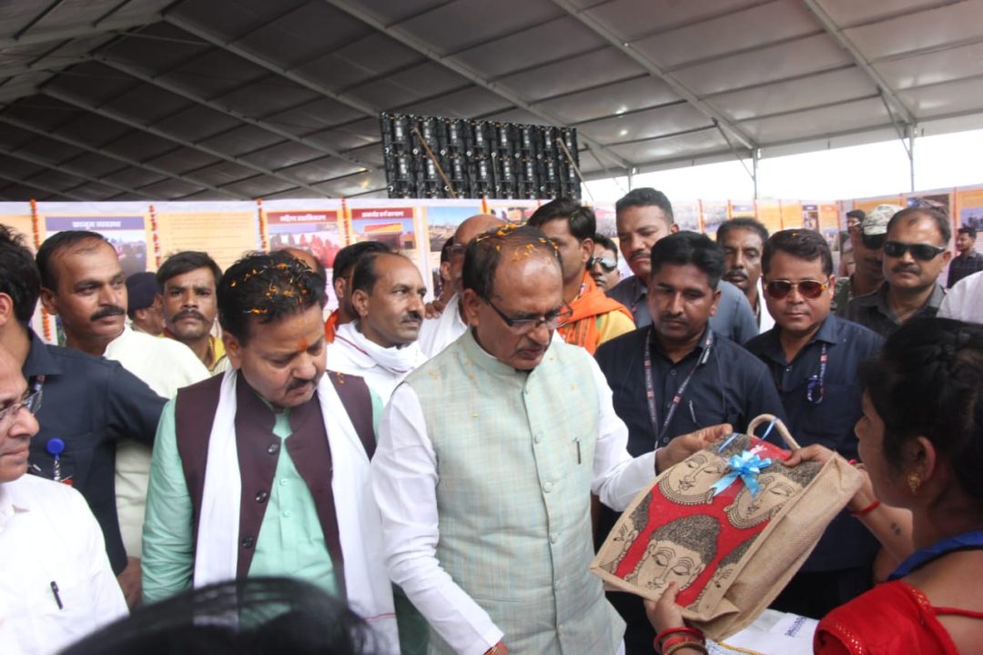 रायसेन ,जिले के सिलवानी विकासखंड के कस्बा बम्होरी में आयोजित लाड़ली बहना सम्मेलन तथा आवासीय भू-अधिकार पत्र वितरण कार्यक्रम में मुख्यमंत्री श्री Shivraj Singh Chouhan द्वारा स्व–सहायता समूहों की महिलाओं द्वारा बनाई गई सामग्रियों, उत्पादों का अवलोकन किया गया। उन्होंने महिलाओं से संवाद कर सामग्रियों/उत्पादों और समूह की गतिविधियों की भी जानकारी ली।