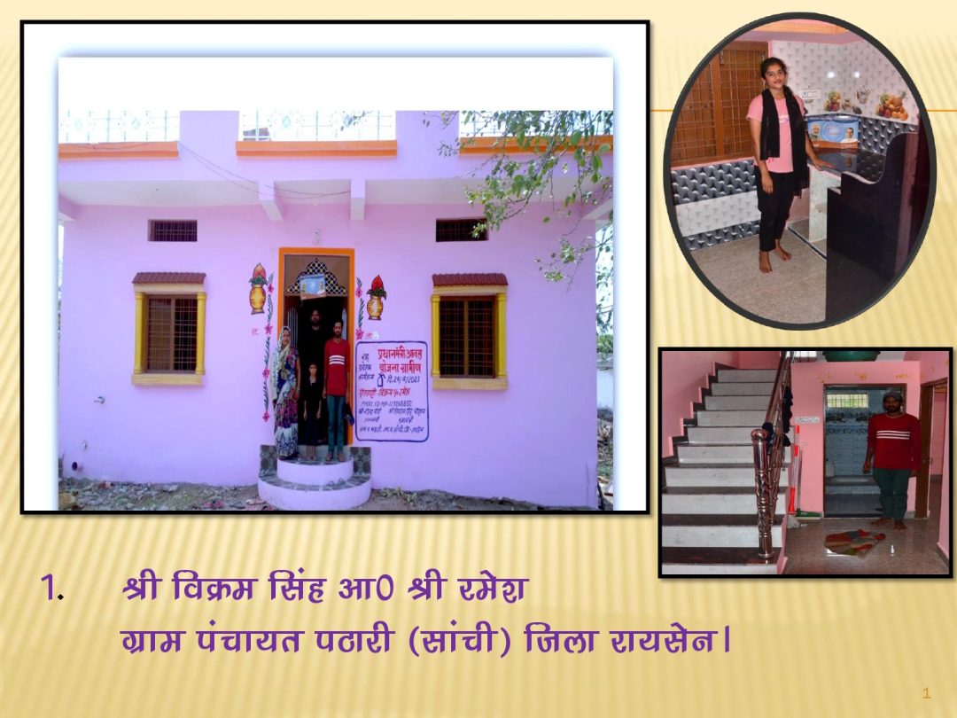 रायसेन जिले की सांची जनपद की ग्राम पंचायत पठारी निवासी हितग्राही श्री विक्रम सिंह और उनका परिवार प्रधानमंत्री आवास योजना का लाभ पाकर बेहद खुश है। प्रधानमंत्री आवास योजना की मदद से अपने पक्के मकान का सपना साकार होने पर श्री विक्रम सिंह और उनका परिवार प्रधानमंत्री श्री नरेन्द्र मोदी और मुख्यमंत्री श्री शिवराज सिंह चौहान का आभार मानते हुए बताते हैं कि पक्का मकान उनके लिए एक सपना ही था। उनका पूरा जीवन कच्चे मकान में बीता है, कभी इतने रूपए जमा ही नहीं कर पाए कि घर की पक्की छत बना सके। लेकिन जब हमारा नाम प्रधानमंत्री आवास योजना ग्रामीण में आया और हमें पता चला कि अब हमारा भी पक्का मकान होगा। मैं और मेरा परिवार बहुत खुश हुए। फिर हमें राशि मिली और हमने अपना पक्का मकान बनाया। अब समाज में हमारा भी बहुत सम्मान बढ़ गया है परिवार वाले भी बहुत खुश है। श्री विक्रम सिंह बताते हैं कि अब हर गरीब व्यक्ति का पक्के मकान का सपना पूरा हो रहा है। सरकार की मदद से हर गरीब अपना खुद का पक्का घर बना रहा है। प्रधानमंत्री आवास योजना हम जैसे गरीबों के लिए किसी वरदान से कम नहीं है। इसके लिए मैं प्रधानमंत्री श्री नरेन्द्र मोदी और मुख्यमंत्री श्री शिवराज सिंह चौहान को धन्यवाद देता हूं।