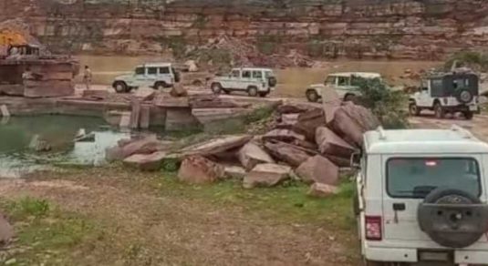 कलेक्टर श्री अरविंद दुबे के निर्देश पर खनिज विभाग, राजस्व एवं पुलिस विभाग ने रायसेन तहसील के ग्राम कानपोहरा के खसरा क्रमांक 5, 6 एवं 7 में श्री आफताब हुसैन निवासी 14 मॉडल ग्राउंड हमीदिया रोड भोपाल तथा श्री श्यामलाल समरवार निवासी ग्राम कानपोहरा तहसील व जिला रायसेन द्वारा अवैध रूप से फर्शी पत्थर का उत्खनन किया जाना पकड़ा गया है। मौके पर जेसीबी कम्पनी की पोकलेन वाहन क्रमांक एमपी 04 के 7265 वाहन क्रमांक एमपी 04 के 5265 एवं ट्रक एस मॉडल टाटा 1210 एसई बिना क्रमांक के ऑपन बॉडी जप्त किया गया है। मौके से 31032 घन मीटर फर्शी पत्थर का अवैध उत्खनन किया जाना पाया गया है। जिसका प्रकरण मप्र खनिज (अवैध खनन, परिवहन तथा भण्डारण का निवारण) नियम, 2022 के नियम 18 के अंतर्गत बनाया गया है।