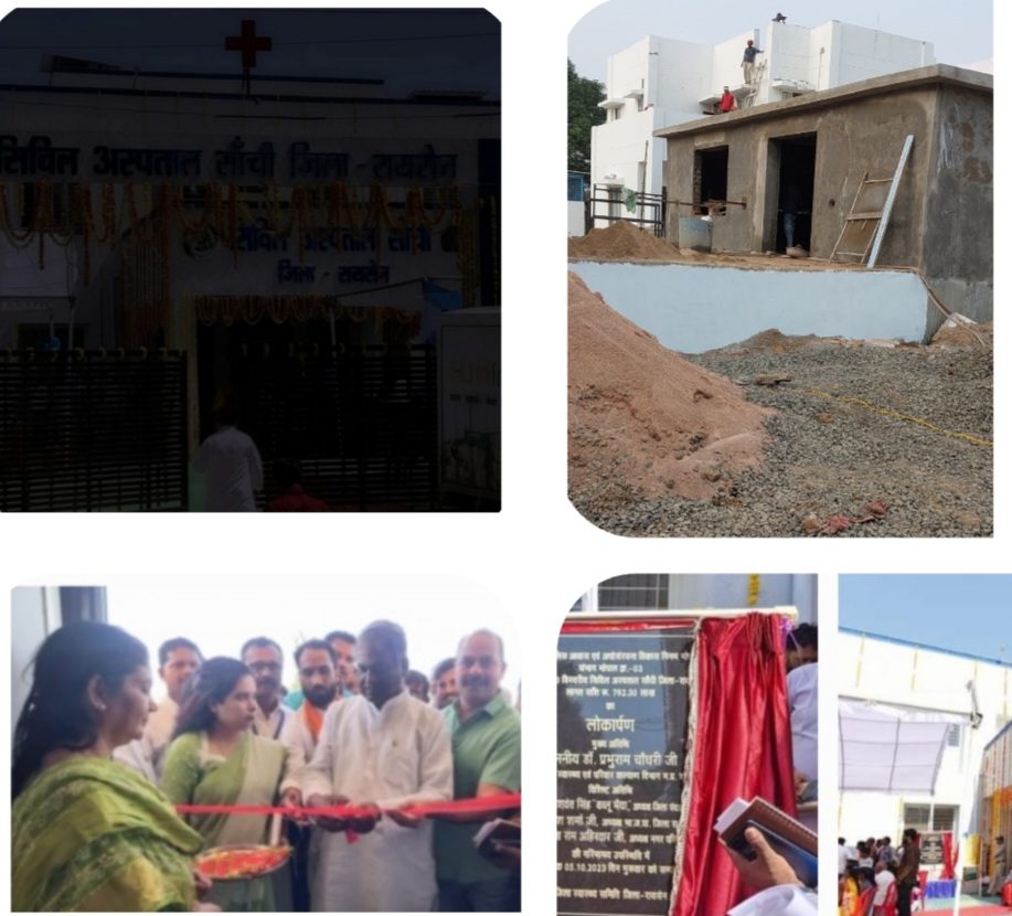 सांची,,, नगर के 30 बिस्तर वाले अस्पताल का उन्नयन कर इसे सिविल अस्पताल का दर्जा मिल गया तथा यह अस्पताल अब 50 बिस्तरीय अस्पताल बन गया । परन्तु स्वास्थ्य विभाग द्वारा इस अस्पताल का निर्माण भी पूरा नहीं हो सका तथा आनन-फानन में इसका स्वास्थ्य मंत्री के कर कमलों द्वारा लोकार्पण करा दिया गया । अभी भी निर्माण जारी है तथा सिविल अस्पताल अंधेरे की जकड में जकड़ा हुआ है ।