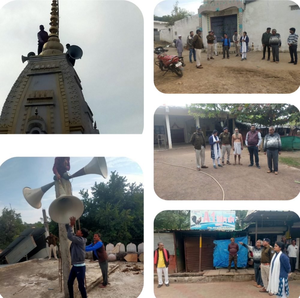 जानकारी के अनुसार नगर के धार्मिक स्थलों पर शासन के निर्देशानुसार प्रशासन ने पहुंच कर जहां चार माइक लगे थे उनकी संख्या में कमी कराई तथा नियमानुसार ध्वनि की समय-सीमा निर्धारित की एवं इस संबंध में नियमों की जानकारी दी गई । एवं बाजार में पहुंच कर मांस मछली अंडे विक्रेताओं को नियम समझाते हुए इन दुकानों पर कांच लगाने अथवा आड़ में बेचने की समझाइश दी गई । इस संबंध में नगर के सभी मंदिरों से माइक संख्या कम कराईं गई तथा नियमानुसार ध्वनि नियंत्रित रखने के निर्देश दिये वहीं नगर की एक मात्र मस्जिद पर पहुंच कर माइक हटवाए गये तथा सीमित संख्या में माइक रखने व नियंत्रित ध्वनि का उपयोग करने की हिदायत दी गई जिससे आम व्यक्ति के स्वास्थ्य पर विपरीत प्रभाव न पड़ सके । इस सम्बन्ध में दिशा निर्देश की जानकारी दी गई सभी धार्मिक स्थलों पर प्रशासन को सहयोग करने का आश्वासन दिया गया । मस्जिद कमेटी के लोगों द्वारा स्वयं प्रशासन के समक्ष माइको की संख्या कम की गई तथा मंदिरों पर भी मंदिर समितियों द्वारा माइक संख्या कम करते हुए प्रशासन को सहयोग किया गया । इस अवसर पर मस्जिद कमेटी की ओर से कमेटी पदाधिकारी उपस्थित थे तथा मंदिरों पर मंदिर समिति के सदस्यों ने भी स्वयं माइक संख्या कम की । इस अवसर पर प्रशासन की ओर से अतिरिक्त तहसीलदार श्रीमती नियति साहू थाना प्रभारी मानसिंह सहायक उपनिरीक्षक राजू यादव नगर परिषद की ओर से संपत्ति अधिकारी रमेश शर्मा सहित अन्य कर्मचारी उपस्थित थे। इसके बाद प्रशासन ने बाजार में मांस मछली अंडे की दुकानों का निरीक्षण किया एवं दुकानदारों को नियमों की जानकारी दी गई दुकानदारों ने भी अपनी अपनी दुकानों पर आड़ की गई। इस अवसर पर श्रीमती साहू ने सभी से अपील करते हुए कहा कि शासन के निर्देश का पालन करते हुए नियमों के अंतर्गत अपने व्यवसाय करें ।