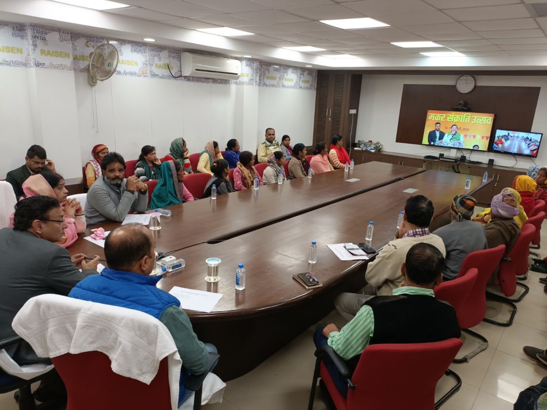 मध्यप्रदेश में महिला सशक्तिकरण एवं युवा ऊर्जा पर केंद्रित मकर संक्रांति उत्सव 10 जनवरी से 15 जनवरी तक मनाया जा रहा है, जिसका शुभारंभ मुख्यमंत्री डॉ मोहन यादव द्वारा भोपाल में आयोजित प्रदेश स्तरीय कार्यक्रम में ’मुख्यमंत्री लाड़ली बहना योजना’ अंतर्गत लाड़ली बहनों को ₹1576 करोड़ एवं हितग्राहियों को ₹341 करोड़ की पेंशन व आर्थिक सहायता का सिंगल क्लिक से अंतरण किया गया। रायसेन में कलेक्ट्रेट कार्यालय स्थित एनआईसी कक्ष में जिला पंचायत अध्यक्ष श्री यशवंत मीणा, नगर पालिका अध्यक्ष श्रीमती सविता सेन, कलेक्टर श्री अरविंद दुबे, विधायक प्रतिनिधि श्री जमना सेन सहित अधिकारियों, लाड़ली बहनों तथा पेंशन योजनाओं के हितग्राहियों द्वारा प्रदेश स्तरीय कार्यक्रम तथा मुख्यमंत्री डॉ यादव के संबोधन का लाईव प्रसारण देखा व सुना गया।