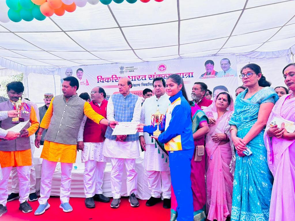 जिले की मण्डीदीप नगर पालिका और औबेदुल्लागंज नगर परिषद में शनिवार को आयोजित विकसित भारत संकल्प यात्रा शिविरों में सांसद श्री रमाकांत भार्गव और क्षेत्रीय विधायक श्री सुरेन्द्र पटवा सम्मिलित हुए। उन्होंने उपस्थित जनसमूह को संबोधित करते हुए कहा कि प्रधानमंत्री श्री नरेन्द्र मोदी के नेतृत्व में चलाई जा रहीं विभिन्न जनकल्याणकारी योजनाओं को जन-जन तक पहुंचाने के लिए विकसित भारत संकल्प यात्रा निकाली जा रही है। इन यात्राओं के माध्यम से नागरिकों को योजनाओं की जानकारी देने के साथ ही उनसे आवेदन भी लिए जा रहे हैं। जिससे कि पात्रतानुसार योजनाओं से लाभान्वित किया जा सके। इसके अलावा हितग्राहियों को योजनाओं के हितलाभ भी वितरित किए जा रहे हैं। उन्होंने प्रधानमंत्री आवास योजना, जल जीवन मिशन अंतर्गत नलजल योजना, आयुष्मान भारत योजना, विभिन्न पेंशन योजनाएं, किसान सम्मान निधि, अटल पेंशन योजना, जीवन ज्योति बीमा योजना, जीवन सुरक्षा बीमा योजना सहित अनेक योजनाओं का उल्लेख किया। शिविरों में सांसद श्री भार्गव तथा विधायक श्री पटवा द्वारा अनेक हितग्राहियों को पात्रतानुसार योजनाओं के हितलाभ भी वितरित किए गए। साथ ही मेघावी विद्यार्थियों तथा खिलाड़ियों को पुरस्कृत कर सम्मानित भी किया गया। इस अवसर पर स्थानीय जनप्रतिनिधि, अधिकारी और बड़ी संख्या में नागरिक उपस्थित रहे।