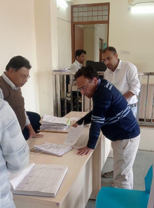 कलेक्टर श्री अरविंद दुबे द्वारा शुक्रवार को सुल्तानपुर में तहसील कार्यालय का आकस्मिक निरीक्षण किया गया। उन्होंने तहसीलदार न्यायालय सुल्तानपुर का निरीक्षण कर आरसीएमएच पोर्टल सहित न्यायालय में लंबित प्रकरणों तथा उनके निराकरण की कार्यवाही की विस्तृत जानकारी ली। उन्होंने नामांतरण, बंटवारा, सीमांकन सहित राजस्व संबंधी अन्य प्रकरणों की जानकारी लेते हुए सभी प्रकरणों को नियमानुसार दर्ज करते हुए निर्धारित समयावधि में निराकरण करने के निर्देश दिए।