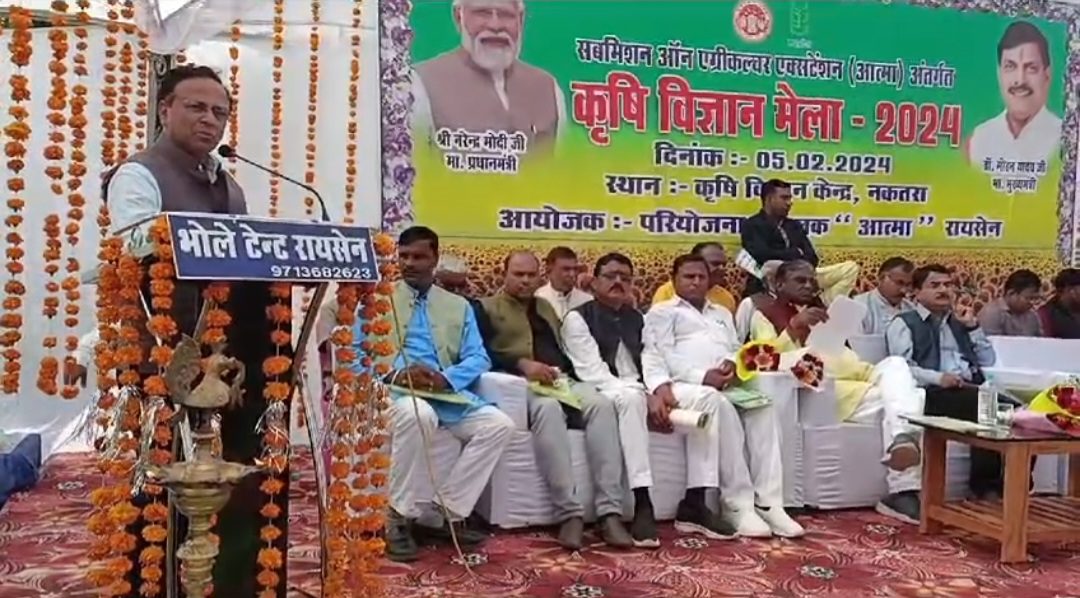 जिले के कृषि विज्ञान केंद्र नकतरा में सब मिशन ऑन एग्रीकल्चर एक्सटेंशन आत्मा अंतर्गत आयोजित जिला स्तरीय कृषि विज्ञान मेला एवं प्रदर्शनी का लोक स्वास्थ्य एवं परिवार कल्याण राज्यमंत्री श्री नरेन्द्र शिवाजी पटेल, सांची विधायक डॉ प्रभुराम चौधरी तथा जिला पंचायत अध्यक्ष श्री यशवंत मीणा द्वारा कन्यापूजन और दीप प्रज्वलन कर शुभारंभ किया गया। इसके पूर्व उन्होंने फीता काटकर कृषि विज्ञान प्रदर्शनी का भी शुभारंभ किया और स्टॉलों का भ्रमण किया। इस अवसर पर पूर्व केबिनेट मंत्री श्री रामपाल सिंह, जिला पंचायत की कृषि समिति के सभापति श्री दिग्विजय सिंह सहित स्थानीय जनप्रतिनिधि भी उपस्थित रहे।राज्यमंत्री श्री पटेल ने उपस्थित किसानों को संबोधित करते हुए कहा कि हमारी संस्कृति और सभ्यता के जो अंग खोते जा रहे थे, प्रधानमंत्री श्री नरेन्द्र मोदी ने देश की कमान संभालने के बाद उन्हें पुर्नस्थापित करने का काम किया है। श्रीअन्न (मिलेट) हमारी सभ्यता का, हमारे भोजन का अभिन्न अंग था। धीरे-धीरे इसकी मात्रा हमारे भोजन में कम होने लगी। लेकिन प्रधानमंत्री श्री मोदी ने श्रीअन्न (मिलेट) को बढ़ावा देने की अभिनव पहल की और सकारात्मक परिणाम मिल रहे हैं। रायसेन जिले में श्रीअन्न को बढ़ावा देने के लिए बहुत अच्छा काम हो रहा है। इसके लिए जिला प्रशासन और कृषि विभाग बधाई के पात्र हैं। जिले के अनेक किसानों ने उन्नत और जैविक खेती में अपनी अलग पहचान बनाई है।
