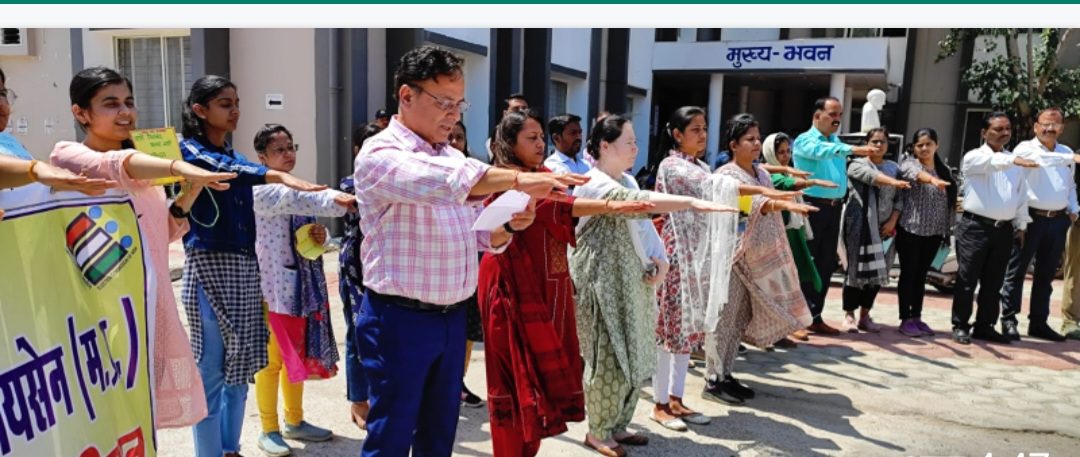 कलेक्टर श्री दुबे ने महाविद्यालय प्रांगण में उपस्थित अधिकारियों, कर्मचारियों तथा छात्र-छात्राओं को लोकसभा आम निर्वाचन-2024 में बिना किसी भय, दबाब या लालच के और जाति, धर्म, सम्प्रदाय, भाषा का भेदभाव किए बिना अपने स्वविवेक से नैतिक मतदान करने की शपथ दिलाई गई। साथ ही छात्र-छात्राओं से अपने मित्रों, रिश्तेदारों, पड़ोसियों एवं परिचितों को भी मतदान हेतु प्रेरित करने के लिए कहा। इस अवसर पर जिला पंचायत सीईओ श्रीमती अंजू पवन भदौरिया सहित अन्य अधिकारी भी उपस्थित रहे।