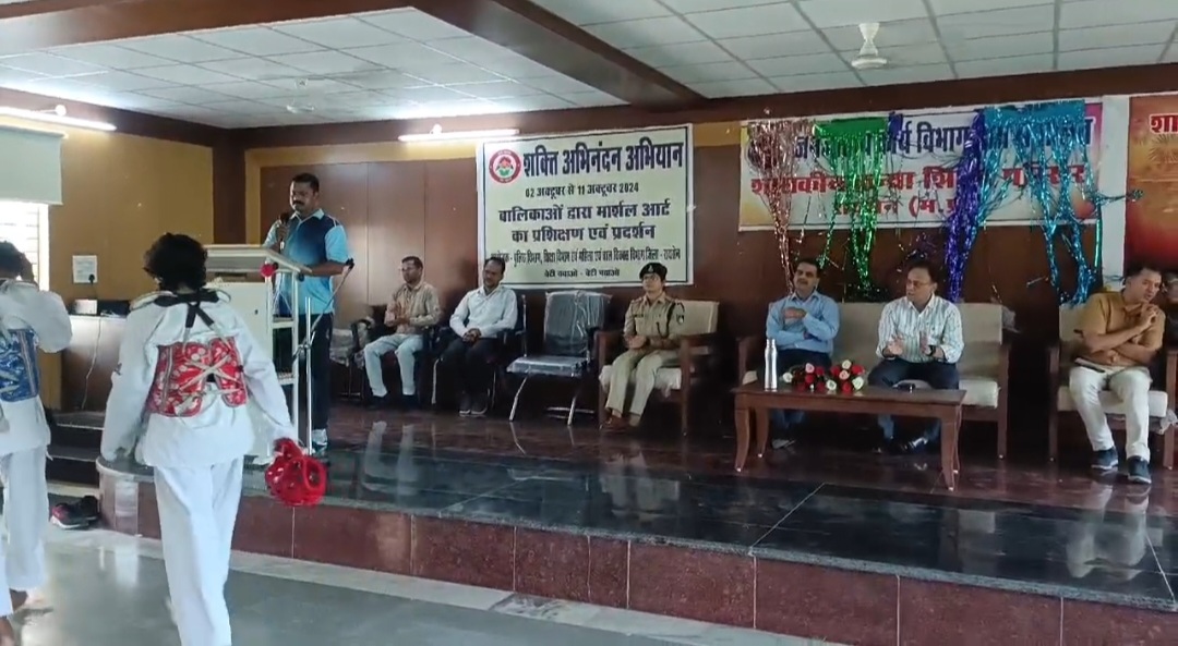 महिला एवं बालिका सशक्तिकरण के प्रति जन-जागरूकता हेतु चलाए जा रहे “शक्ति अभिनंदन अभियान” अंतर्गत बुधवार को रायसेन स्थित शासकीय कन्या शिक्षा परिसर में कलेक्टर श्री अरविंद दुबे तथा पुलिस अधीक्षक श्री पंकज पाण्डे की उपस्थिति में छात्राओं द्वारा मार्शट आर्ट का प्रदर्शन किया गया। शिक्षा परिसर में अध्ययन कर रहीं छात्राओं को आत्मरक्षा हेतु आगामी सात दिवस तक मार्शल आर्ट का प्रशिक्षण दिया जाएगा।