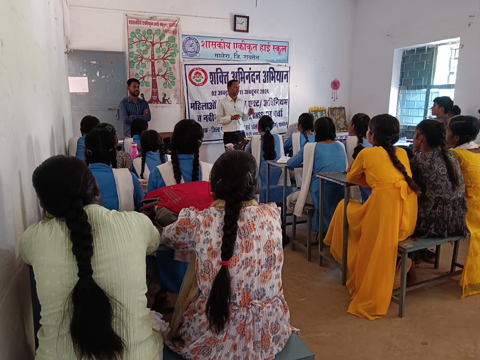 इसी क्रम में ग्राम सालेरा में शासकीय हाईस्कूल में प्रशिक्षण कार्यक्रम आयोजित किया गया। जिसमें महिला बाल विकास विभाग के सहायक संचालक श्री संजय गहरवाल द्वारा छात्राओं को मोबाईल एवं सोशल मीडिया पर होने वाली धोखाधड़ी तथा इससे बचने हेतु सावधानी बरतने के बारे में बताया गया। संरक्षण अधिकारी श्री दिनेश मालवीय ने महिलाओं एवं बालिकाओं से संबंधित कानूनों तथा विभागीय योजनाओं की जानकारी प्रदान की गई। काउंसलर किरण गौर द्वारा भी बालिकाओं की कैरियर काउंसलिंग की गई। इस अवसर पर शासकीय हाईस्कूल सालेरा के प्राचार्य श्री नन्दलाल यादव भी उपस्थित रहे।
