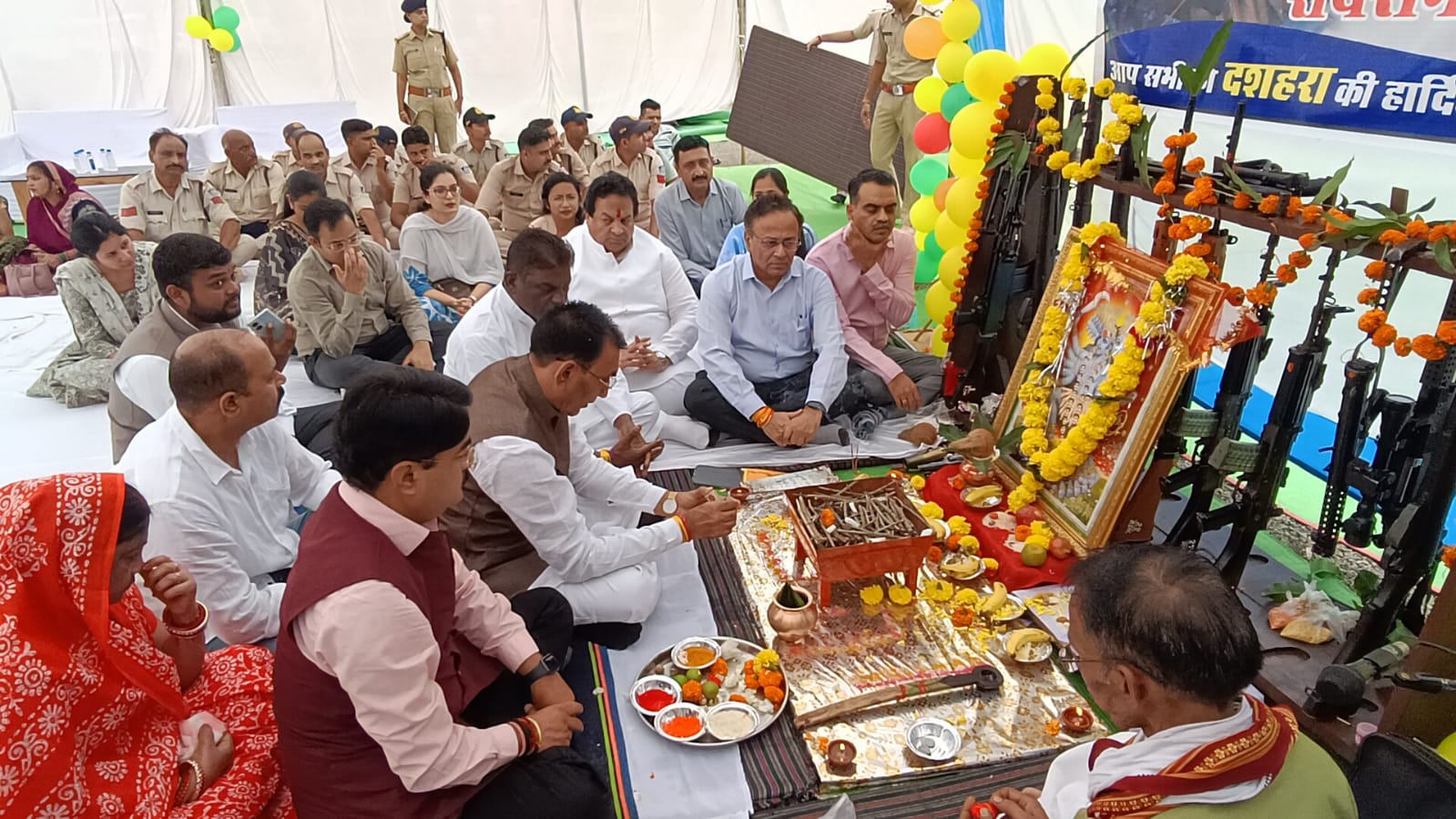 पुलिस परेड ग्राउण्ड पर प्रभारी मंत्री एवं राज्य मंत्री ने की शस्त्रों की पूजा ।