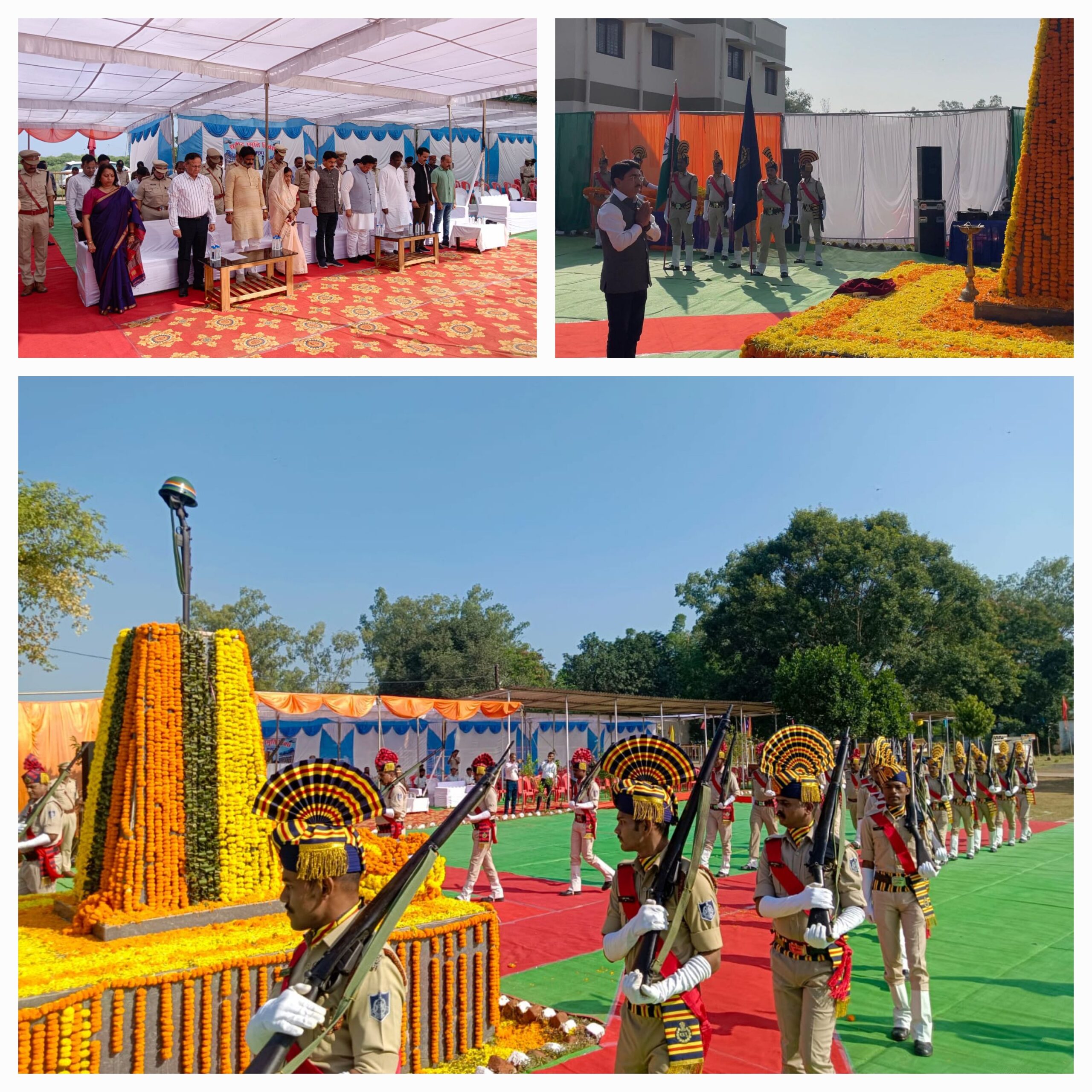 पुलिस स्मृति दिवस के अवसर पर रायसेन स्थित पुलिस लाईन में आयोजित कार्यक्रम में स्वास्थ्य राज्यमंत्री श्री नरेन्द्र शिवाजी पटेल, सांची विधायक डॉ प्रभुराम चौधरी तथा भोजपुर विधायक श्री सुरेन्द्र पटवा द्वारा पुलिस शहीद स्मारक पर पुष्प चक्र अर्पित कर मातृभूमि की रक्षा में अपना सर्वस्व अर्पण करने वाले पुलिस बल के शहीद वीर पुलिसकर्मियों को श्रद्धांजलि दी गई।