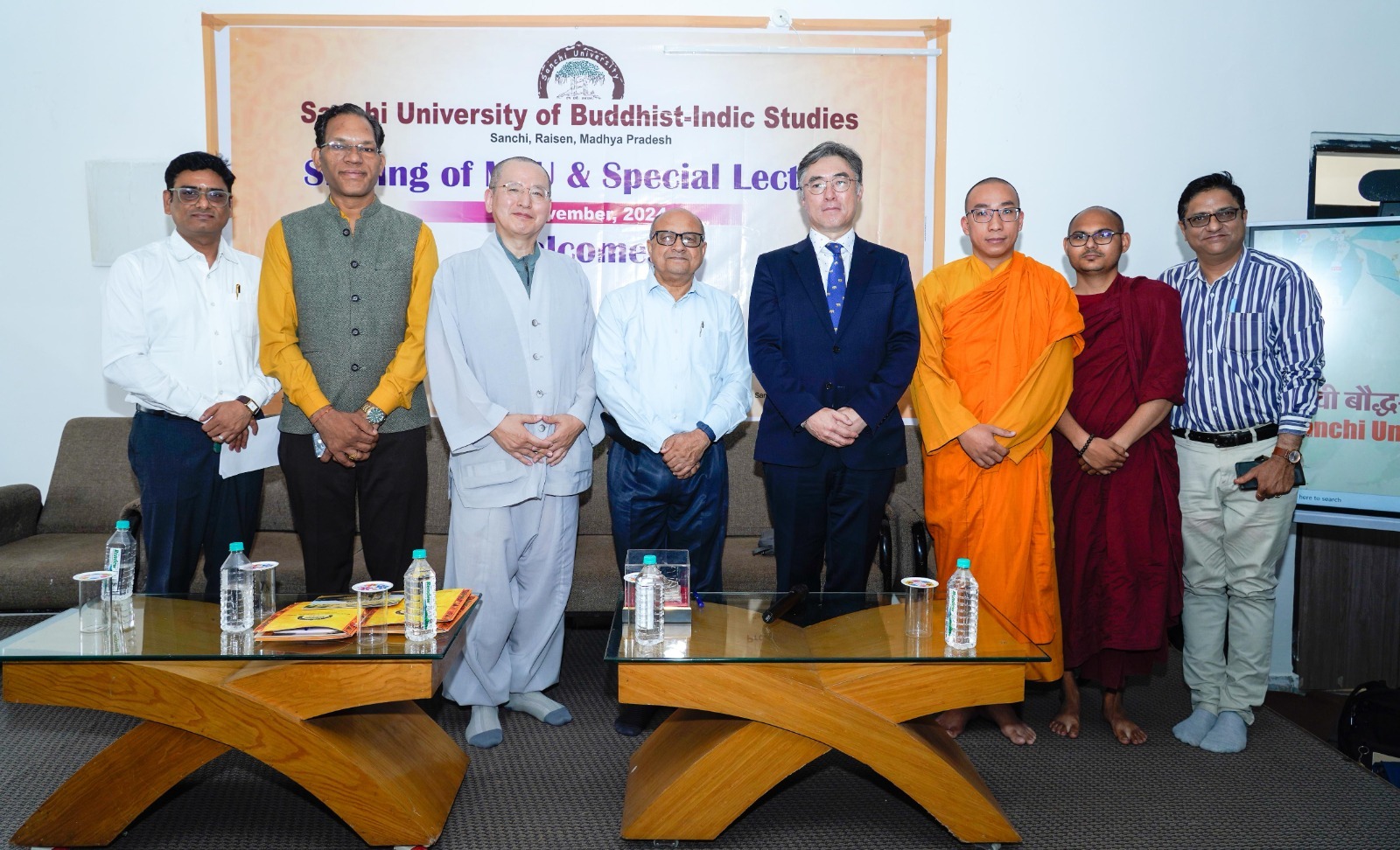 सांची बौद्ध भारतीय ज्ञान अध्ययन विश्वविद्यालय में दक्षिण कोरिया और मंगोलिया के दो विद्वानों के विशेष व्याख्यान आयोजित किए गए। कोरिया के डोंगगुग विश्वविद्यालय के साथ सांची विश्वविद्यालय ने अकादमिक एमओयू भी किया। गहन शोध को बढ़ावा देने के उद्देश्य से दोनों संस्थाओं ने एक दूसरे से हाथ मिलाया हैं। विश्वविद्यालय परिसर में आज कोरिया के डोंगगुक विश्वविद्यालय के बौद्ध अध्ययन विभाग के डीन प्रो. ह्वांग सूनील और सांची विश्वविद्यालय के परीक्षा नियंत्रक डॉ. हरीश चंद्रवंशी ने एम.ओ.यू पर हस्ताक्षर किए।