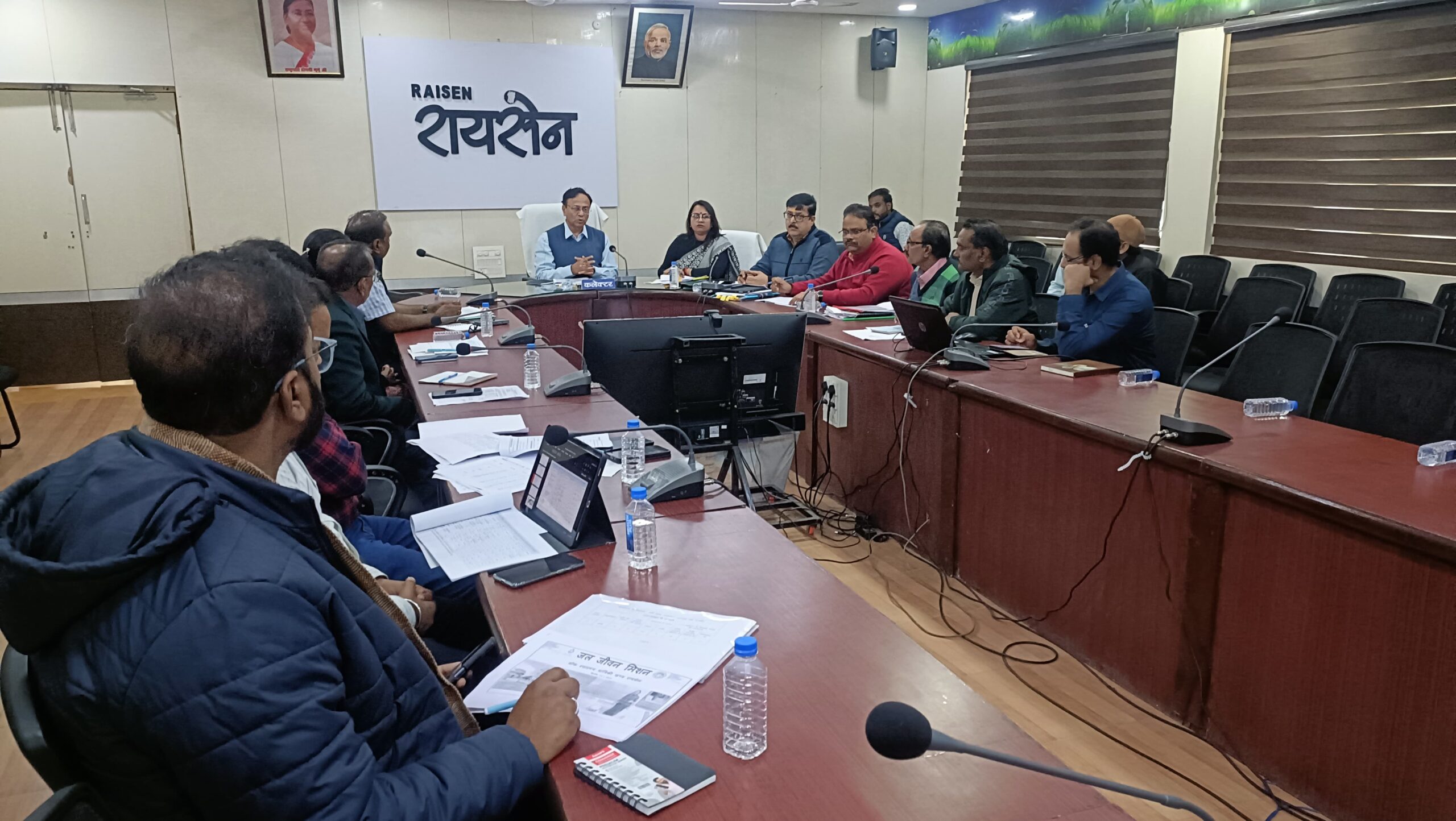 कलेक्ट्रेट सभाकक्ष में आयोजित बैठक में कलेक्टर श्री अरविंद दुबे द्वारा मुख्यमंत्री जनकल्याण अभियान, राजस्व महाअभियान, पीएम जनमन/धरती आबा, आयुष्मान कार्ड सहित अन्य योजनाओं तथा कार्यक्रमों की विस्तृत समीक्षा की गई। उन्होंने अधिकारियों को निर्देश दिए कि शासन की योजनाओं तथा कार्यक्रमों का लाभ प्रत्येक पात्र व्यक्ति तक पहुंचे। कलेक्टर श्री दुबे ने मुख्यमंत्री जनकल्याण अभियान के तहत आयोजित शिविरों में अधिक से अधिक नागरिकों तक सरकार की जनकल्याणकारी योजनाओं का लाभ पहुंचाने के निर्देश दिए। उन्होंने कहा कि शिविर में प्राप्त आवेदनों का त्वरित निराकरण किया जाए।