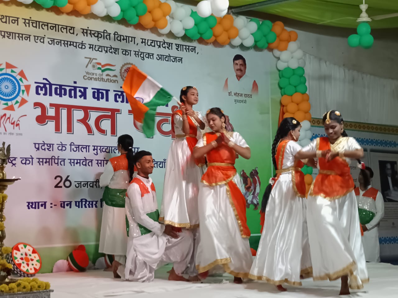 गणतंत्र दिवस की संध्या में रायसेन स्थित वन परिसर में आयोजित भारत पर्व का सांची विधायक डॉ प्रभुराम चौधरी, जिला पंचायत अध्यक्ष श्री यशवंत मीणा, नगर पालिका अध्यक्ष श्रीमती सविता सेन तथा कलेक्टर श्री अरविंद दुबे द्वारा कन्यापूजन और दीप प्रज्जवलन कर शुभारंभ किया गया। विधायक डॉ चौधरी ने उपस्थित नागरिकों को संबोधित किया।
