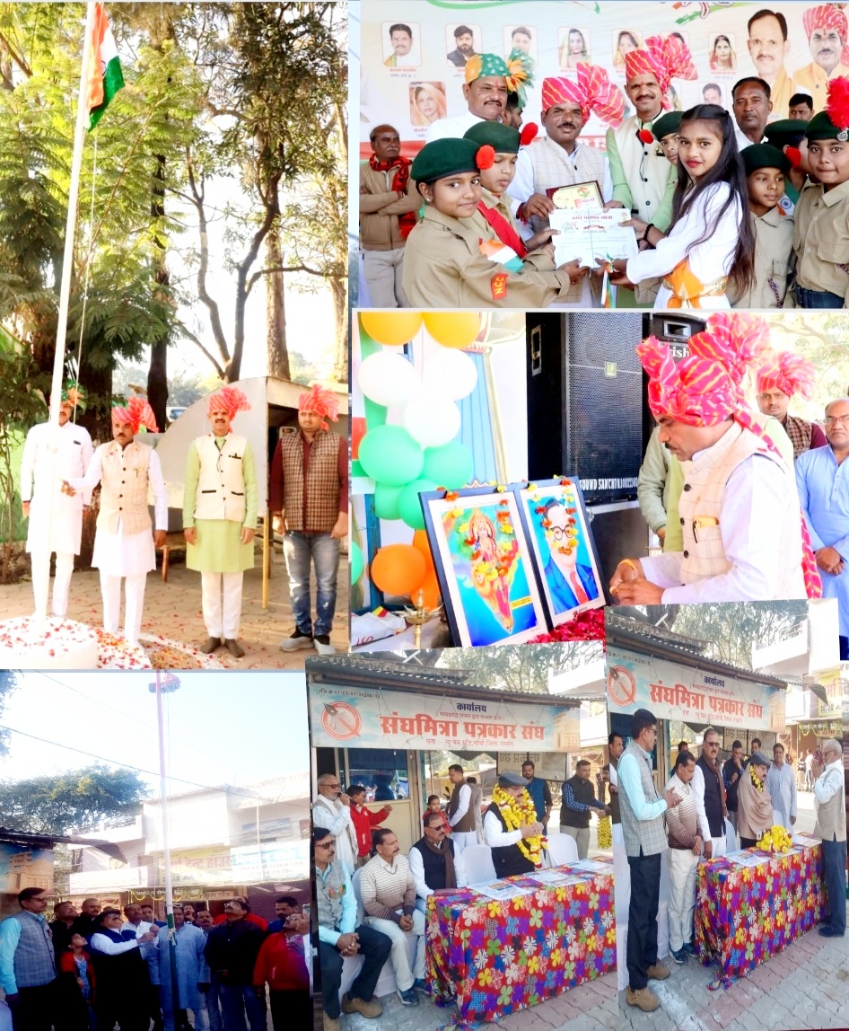 संघमित्रा पत्रकार संघ कार्यालय पर ध्वजारोहण किया गया एवं कार्यक्रम आयोजित हुआ ।इस अवसर पर मुख्य अतिथि के रूप में विदिशा के वरिष्ठ पत्रकार ब्रजेन्द्र कुमार पांडे ने ध्वजारोहण किया इस अवसर पर संघ के सभी पदाधिकारियों सदस्यों नगर के गणमान्य नागरिक शामिल हुए।ध्वजारोहण के उपरांत श्री पांडे ने समीप ही स्थित संविधान निर्माता बाबा सा डा भीमराव आंबेडकर जी की प्रतिमा पर माल्यार्पण किया ।इसके पश्चात कार्यक्रम में उपस्थित आर एस यादव ने संघ द्वारा की जा रही गतिविधियों की खूब प्रशंसा की पत्रकारों ने भी अपने विचार रखे इस अवसर पर संघ के पदाधिकारियों ने मुख्य अतिथि श्री पांडे का फूलमाला एवं शाल भेट कर स्वागत किया ।कार्यक्रम को संबोधित करते हुए श्री पांडे ने अपनी पत्रकारिता के क्षेत्र में की गई गतिविधियों की जानकारी दी इस के साथ ही उन्होंने पत्रकारों को पत्रकारिता के गुण गिनाये उन्होंने कहा हमें हमेशा निर्भीक होकर निडरता के साथ पत्रकारिता करने की जरुरत है तथा पत्रकारिता निष्पक्ष होनी चाहिये उन्होंने अनेक पत्रकारिता करने वाले स्वतंत्रता सेनानियों के नाम गिनाते हुए कहा कि हमें उनका अनुसरण करने की जरुरत है उन्होंने वर्तमान पत्रकारिता पर प्रकाश डालते हुए कहा कि आज पत्रकारिता का मखौल उड रहा है यही कारण है पत्रकारिता की छवि घटती जा रही हैं ।उन्होंने संघ की प्रशंसा करते हुए कहा कि संघ की गतिविधियां हमें समाचार पत्रों के माध्यम से मिलती रहती हैं संघ बना लेना सरल होता है परंतु लंबे अरसे तक उसको चलाते रहना बहुत कठिन होता है परंतु संघमित्रा पत्रकार संघ को मैं बधाई देता हूँ जो सांची से शुरू होकर यह संगठन इतने कम समय में बडी उपलब्धि पा रहा है तथा सामाजिक क्षेत्र में भी अपनी गतिविधियों को चला रहा है ।इस के उपरांत वरिष्ठ पत्रकार ईश्वर दीन वर्मा ने कार्यक्रम में आभार व्यक्त करते हुए कार्यक्रम का समापन किया इस अवसर पर मिष्ठान्न वितरण किया गया ।