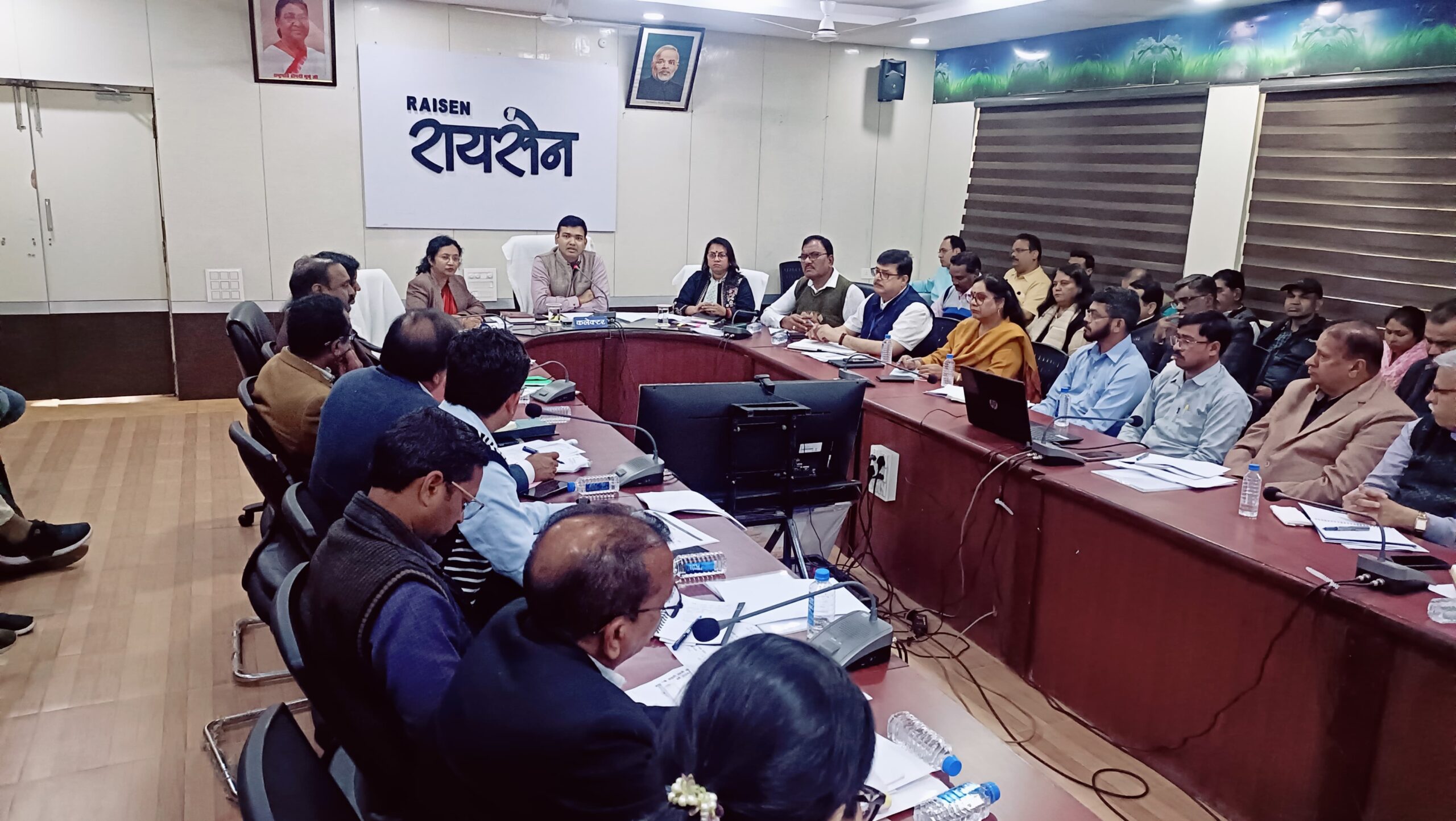 रायसेन जिले के नवागत कलेक्टर श्री अरुण कुमार विश्वकर्मा द्वारा गुरुवार को कलेक्ट्रेट सभाकक्ष में आयोजित बैठक में विभिन्न विभागों की गतिविधियों, योजनाओं की प्रगति तथा अधोसंरचना से जुड़े कार्यों की विस्तृत समीक्षा की जा रही है। बैठक में जिला पंचायत सीईओ श्रीमती अंजू पवन भदौरिया, अपर कलेक्टर श्रीमती श्वेता पवार सहित जिला अधिकारी उपस्थित हैं।
