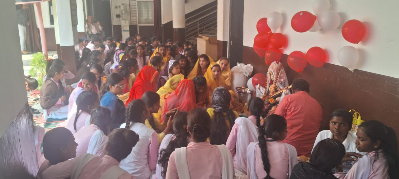 मां सरस्वती का विधि विधान से वैदिक मंत्रों का उच्चारण करते हुए आचार्य चाचू पंडित द्वारा पूजा संपन्न कराई गई। पूजन व हवन के पश्चात प्रसाद वितरण किया गया।