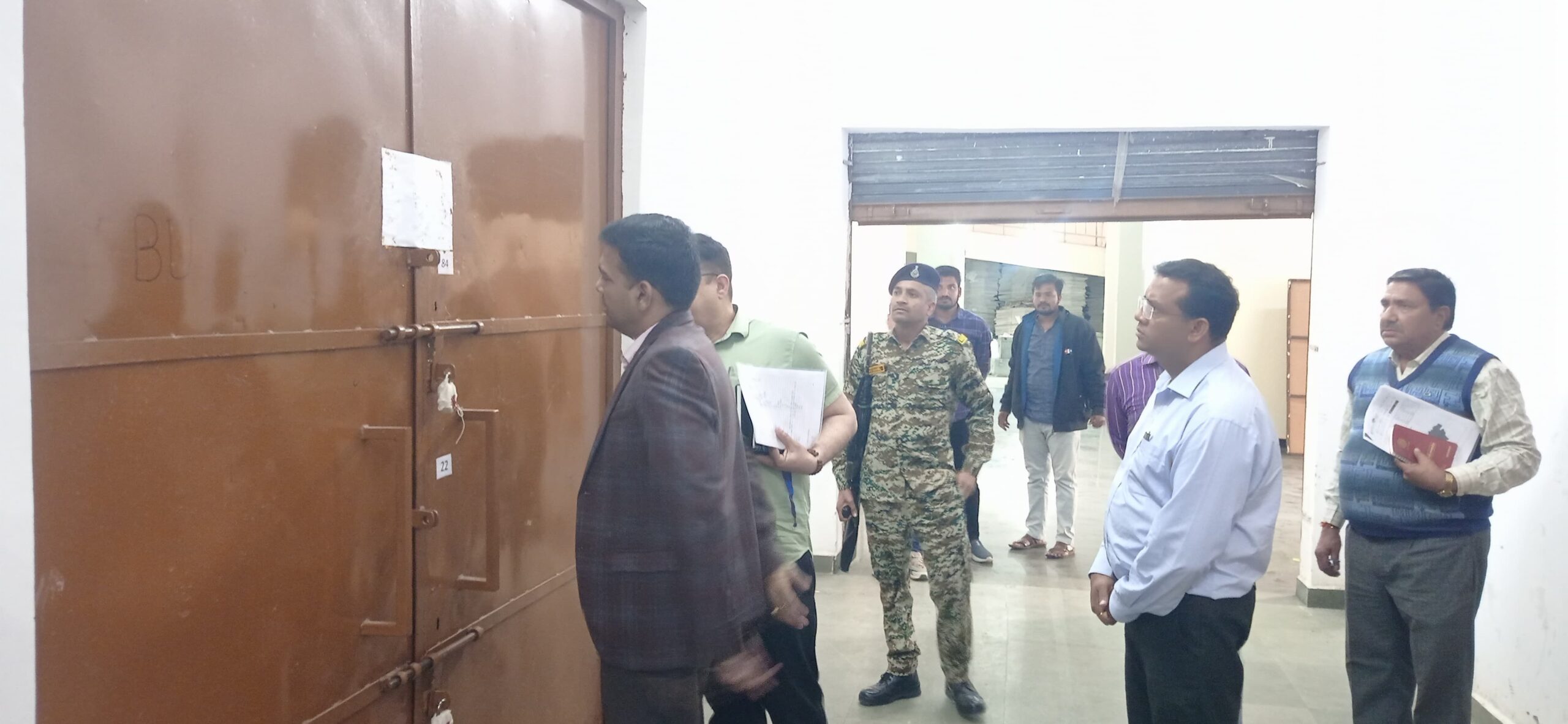 निर्वाचन आयोग के निर्देशानुसार कलेक्टर एवं जिला निर्वाचन अधिकारी श्री अरूण विश्वकर्मा ने मंगलवार को कलेक्ट्रेट कार्यालय परिसर में स्थित ईवीएम वेयरहाउस का निरीक्षण किया गया। निरीक्षण के दौरान उन्होंने सुरक्षा व्यवस्था, सीसीटीवी मॉनीटरिंग सहित अन्य व्यवस्थाओं का जायजा लिया। इस अवसर पर उप जिला निर्वाचन अधिकारी श्री मनीष शर्मा सहित संबंधित अधिकारी उपस्थित रहे।