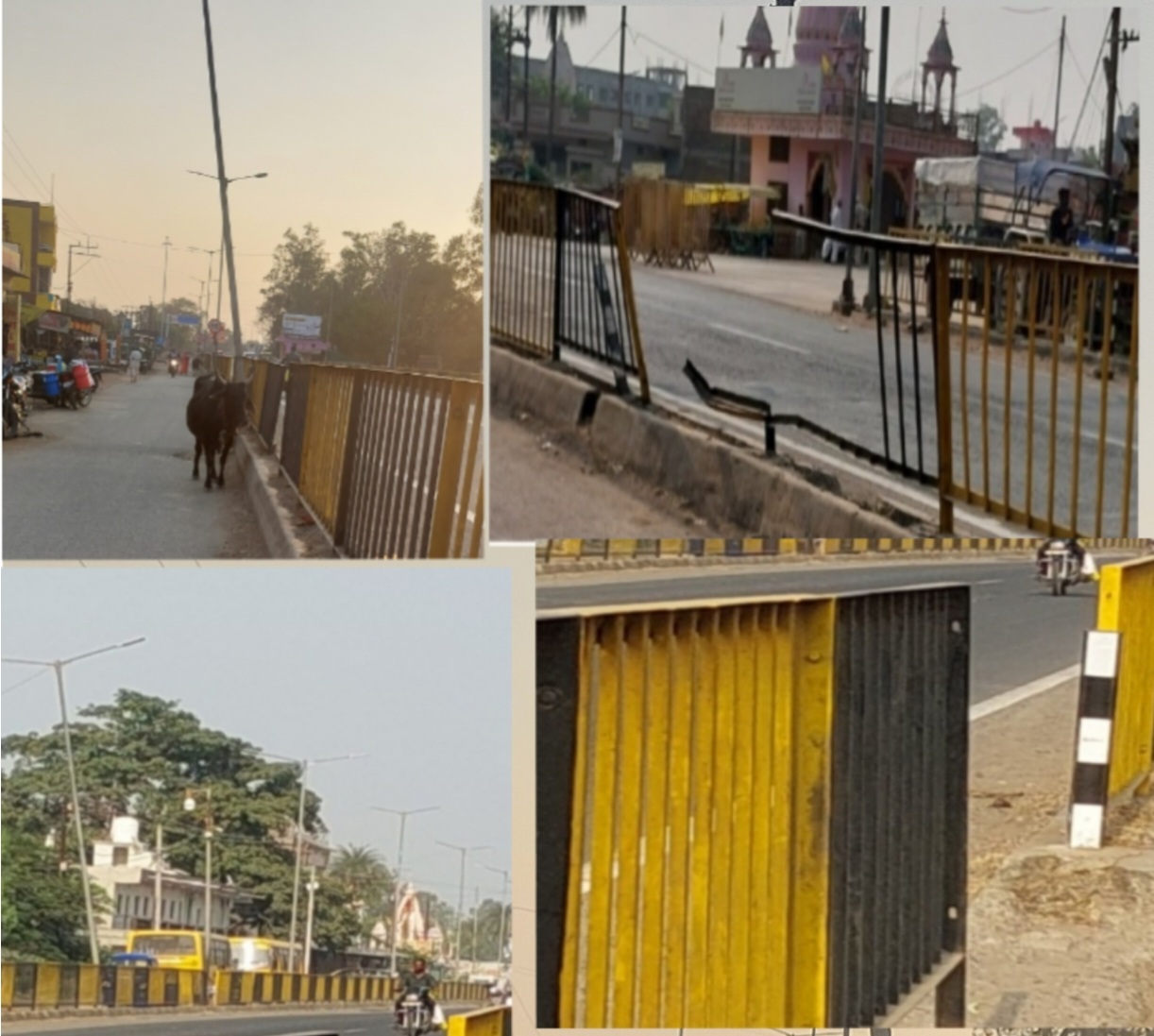 सांची,,, इस नगर से गुजरने वाले राष्ट्रीय राजमार्ग पर लगाई गई सुरक्षा की दृष्टि से लोहे की रैलिंग वाहनों के टकराने से ध्वस्त हो गई अथवा स्वार्थ सिद्धि के कारण निकल गई ।यही हाल राष्ट्रीय राजमार्ग पर लगाये गए स्ट्रीट लाइट के खंभे आडे तिरछे होकर दुर्घटना का कारण बनते जा रहे है ।इस ओर संबंधित बेखबर बने हुए हैं।